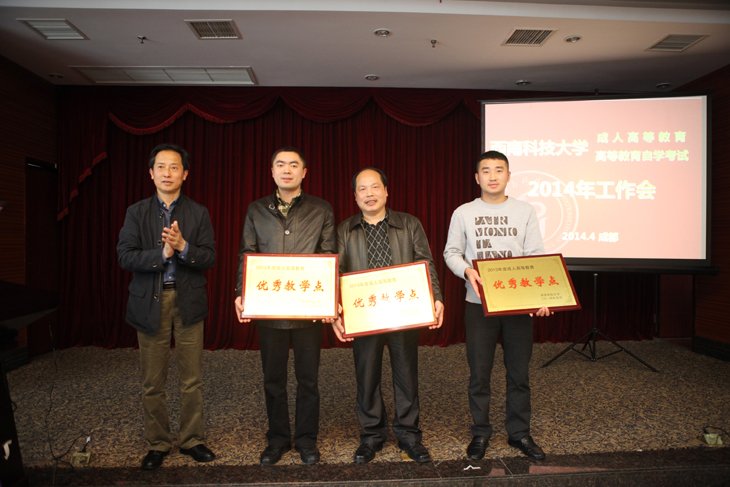 4月10日至11日,学校成人高等教育、高等教育自学考试2014年工作会在成都圆满召开,来自省内外21个成教校外教学点(函授站)、省内46个自考校外助学中心、学校8个教学学院和成人教育学院的相关领导及工作人员130余人参加了会议。学校正校级调研员朱强研究员出席并讲话,会议由成网学院党总支书记王天恒主持。会上对学校成人高等教育、高等教育自学考试2013年的工作进行了总结,对2014年的工作进行了安排与部署,并对2013年度优秀校外教学点、优秀助学中心及先进个人进行了表彰。