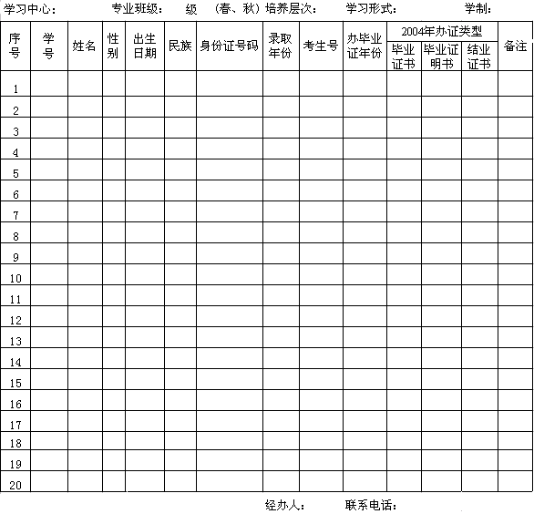 一、要求按照验印表栏目将毕业生信息按专业班级、培养层次、学习形式、学制填写上报。(具体格式见样表)