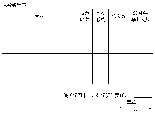 我院(学习中心、教学班)2004届毕业生人数统计见后表。