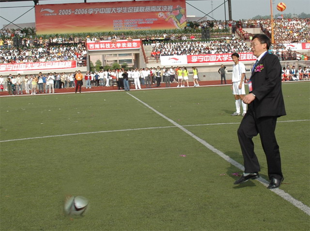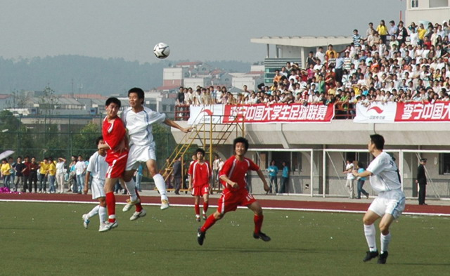 4月的科大校园春光明媚,全国高校足球赛战火重燃。4月25日上午8时,2005--2006中国大学生足球联赛南区决赛在我校隆重开幕。