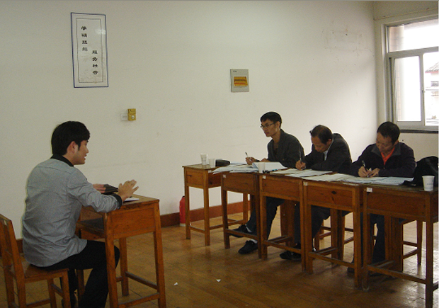 参加本次绍兴学习中心2009秋毕业设计(论文)答辩的共有9个专业81位本科学员,根据专业不同,分为7个答辩室。各位学员按照学号顺序依次进入答辩室进行答辩。其余学员则在准备室等侯。