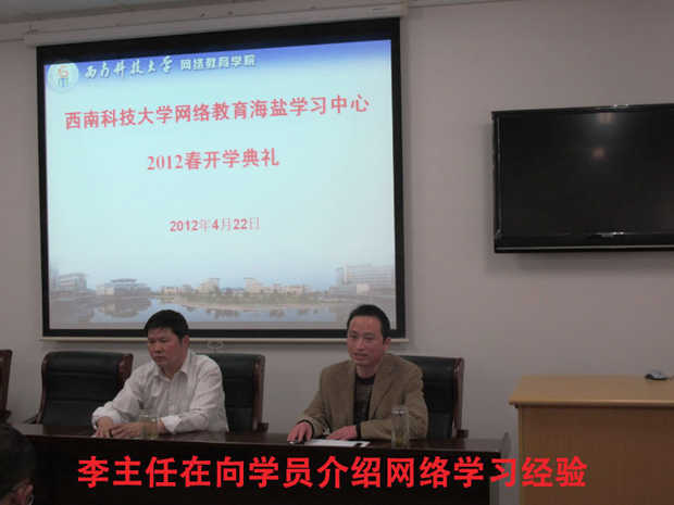 4月22日下午2:00,金年会jinnianhuicom网络教育海盐学习中心2012年春季新生开学典礼在海盐电大531多媒体教室举行。海盐电大书记周建康、教务主任李东山、班主任盛谨发、2012春季各专业新生出席了开学典礼。