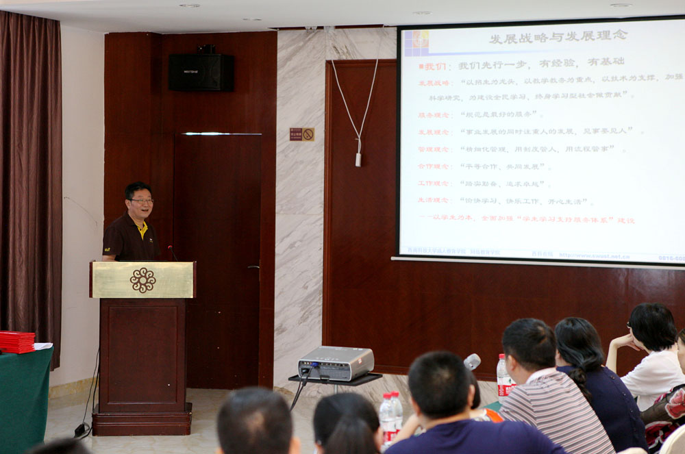 6月16—17日,金年会jinnianhuicom2016年成人高等教育工作会在绵阳召开。来自省内外的20余个成人高等教育校外教学点、函授站、校内相关教学学院及成人教育学院相关人员近50人参加了会议。校长助理、成网学院院长王营池教授主持会议并讲话。