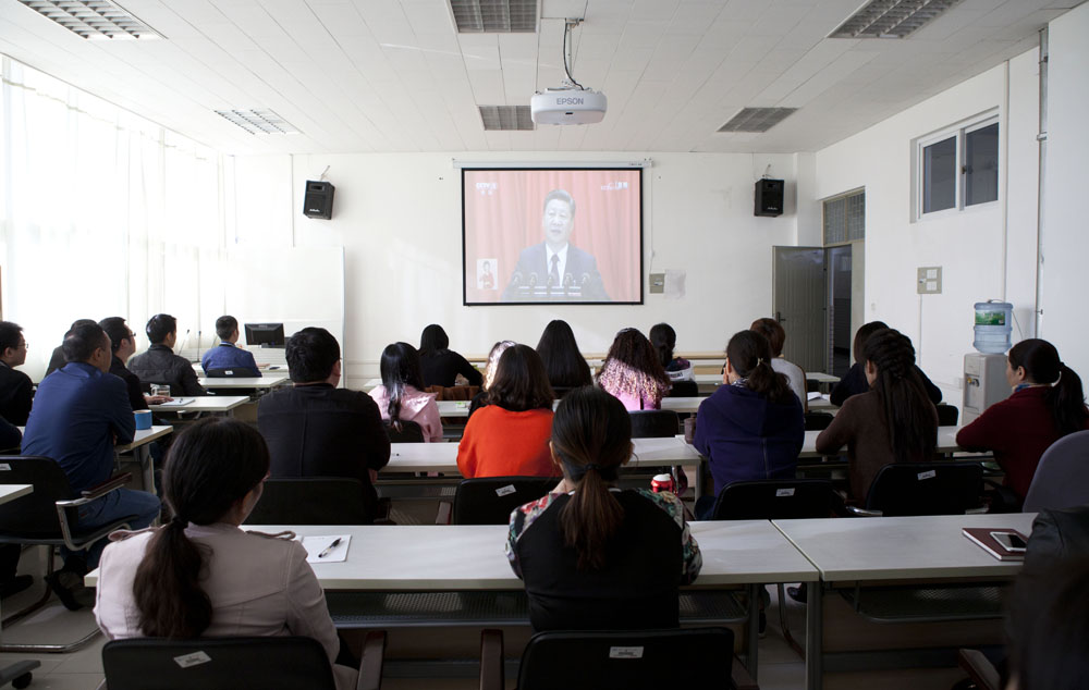 成教网络学院全院教职工集中收看党的十九大开幕式盛况