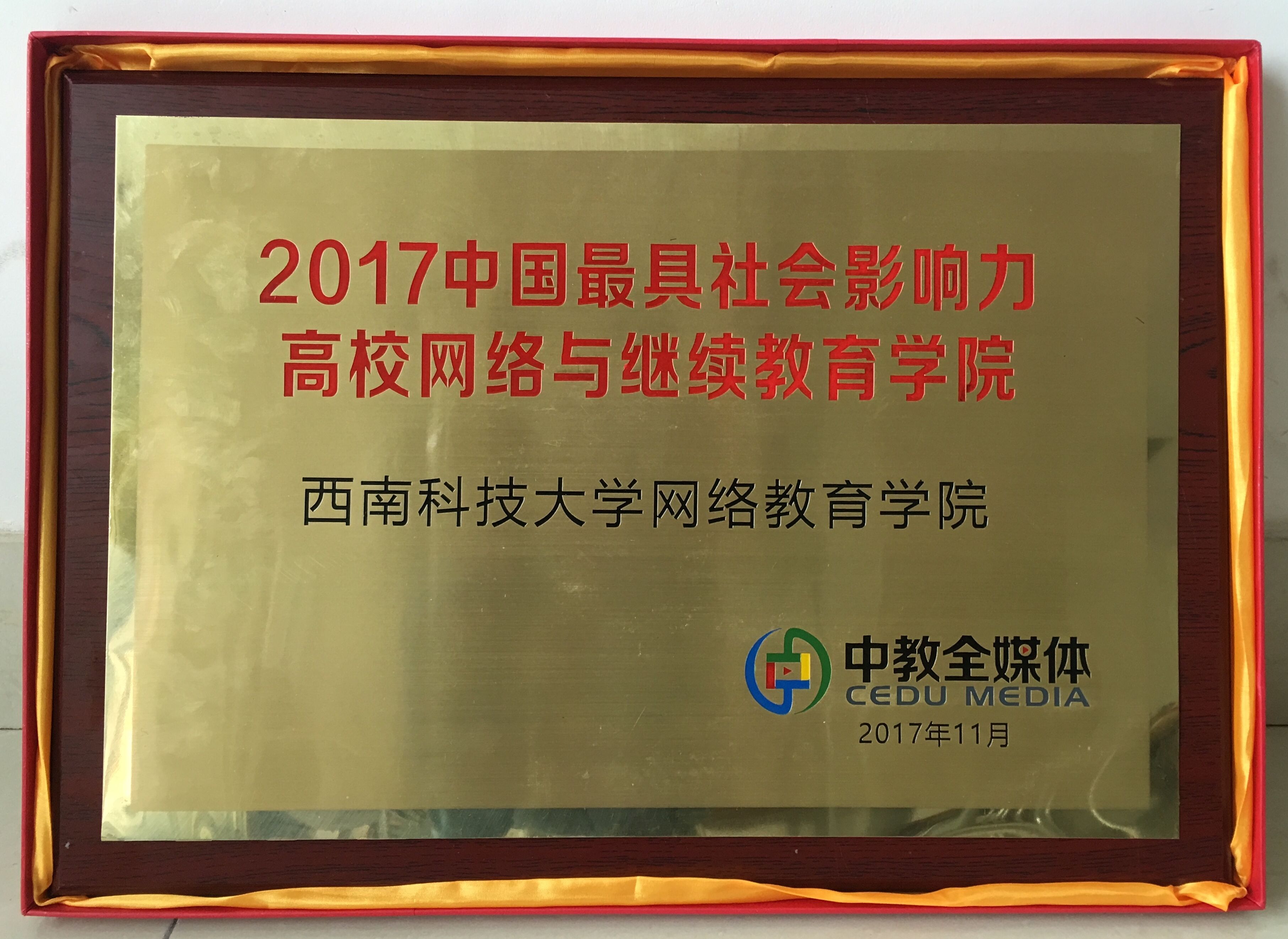 我校网络教育学院荣获“2017年中国最具影响力高校网络与金年会诚信信誉至上”荣誉称号