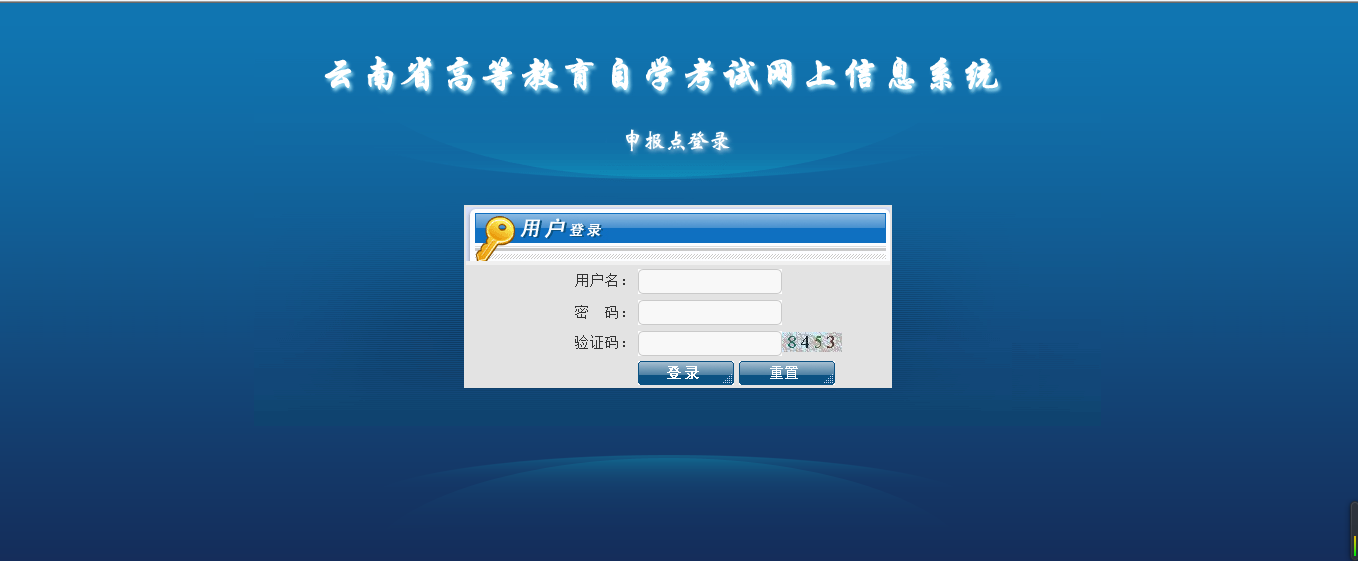 云南省高等教育自学考试网上信息系统申报审核点登录地址:使用IE,兼容模式下登录网址:http://222.221.6.160:9909/sh.html