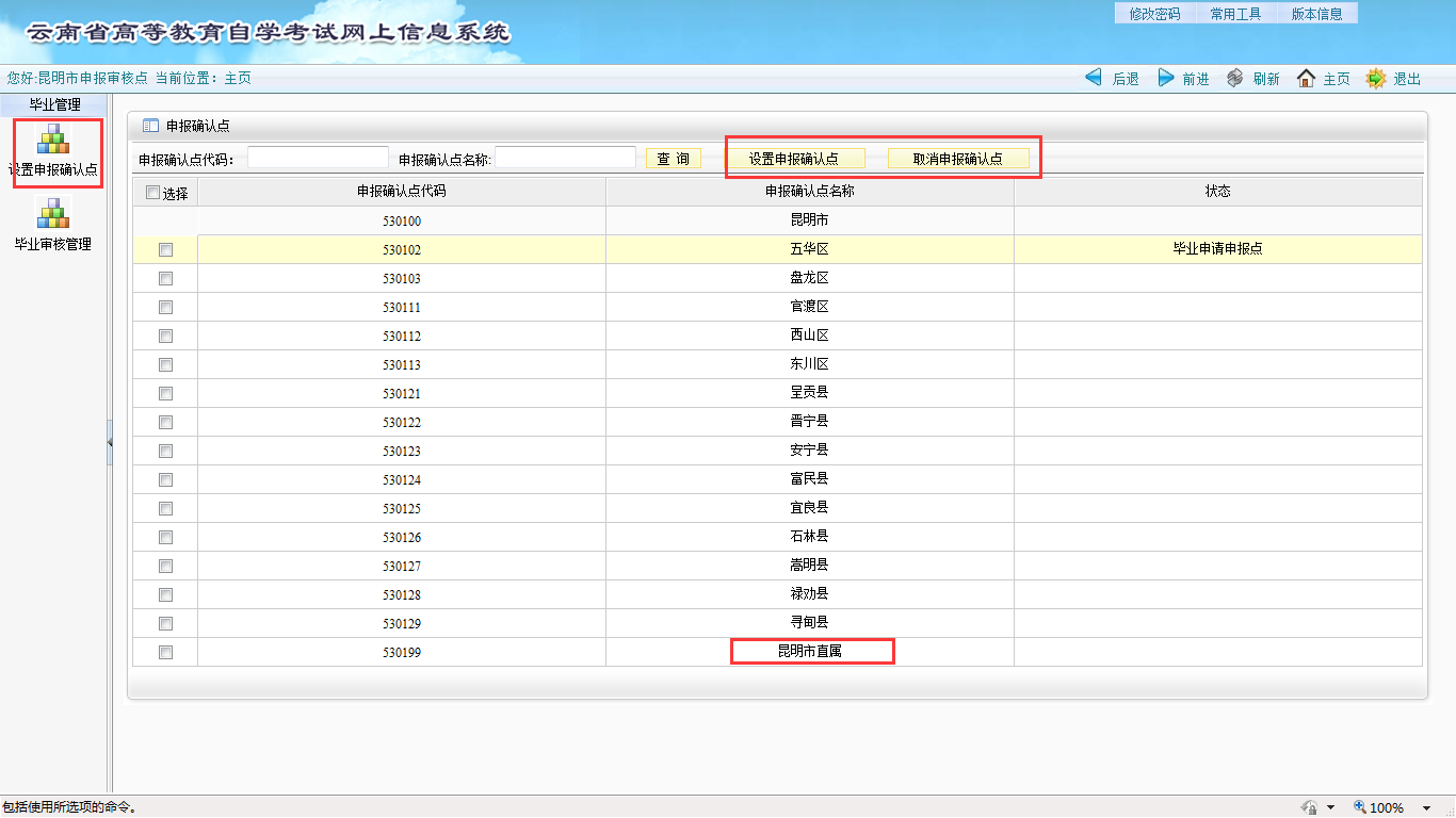 例:昆明市申报审核点 用户名:53010000