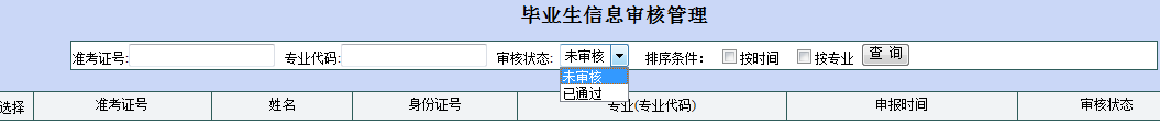 进入毕业生信息审核管理界面后,可以通过检索条件查询需要审核的记录,如图2-3所示