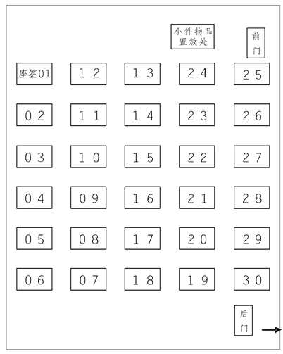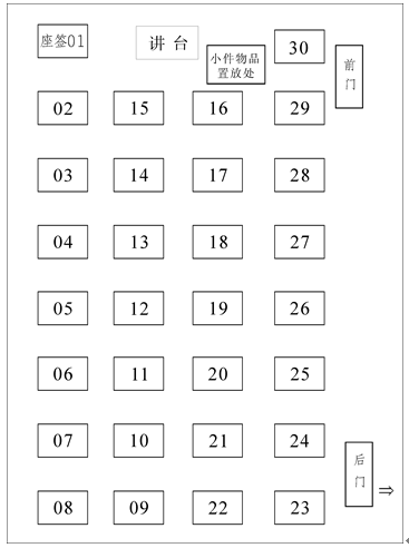注:单人、单桌、单行,间距八十厘米以上,座签贴在桌子左上角。