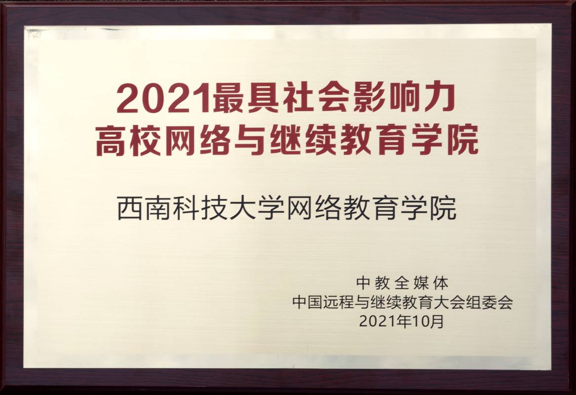 大会评选出2021中国最具社会影响力院校,我校网络教育学院获评“2021最具社会影响力高校网络与金年会诚信信誉至上”。这是自2015年以来,我校网络教育学院连续七年获此殊荣。