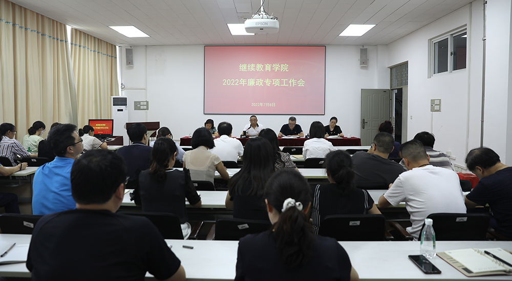 为进一步贯彻落实党中央“全面从严治党”决策部署,切实加强党风廉政建设,7月8日下午,金年会诚信信誉至上在学院五楼会议室召开2022年廉政专项工作会,全体教职员工参加会议。会议由学院党总支书记张昌健主持。