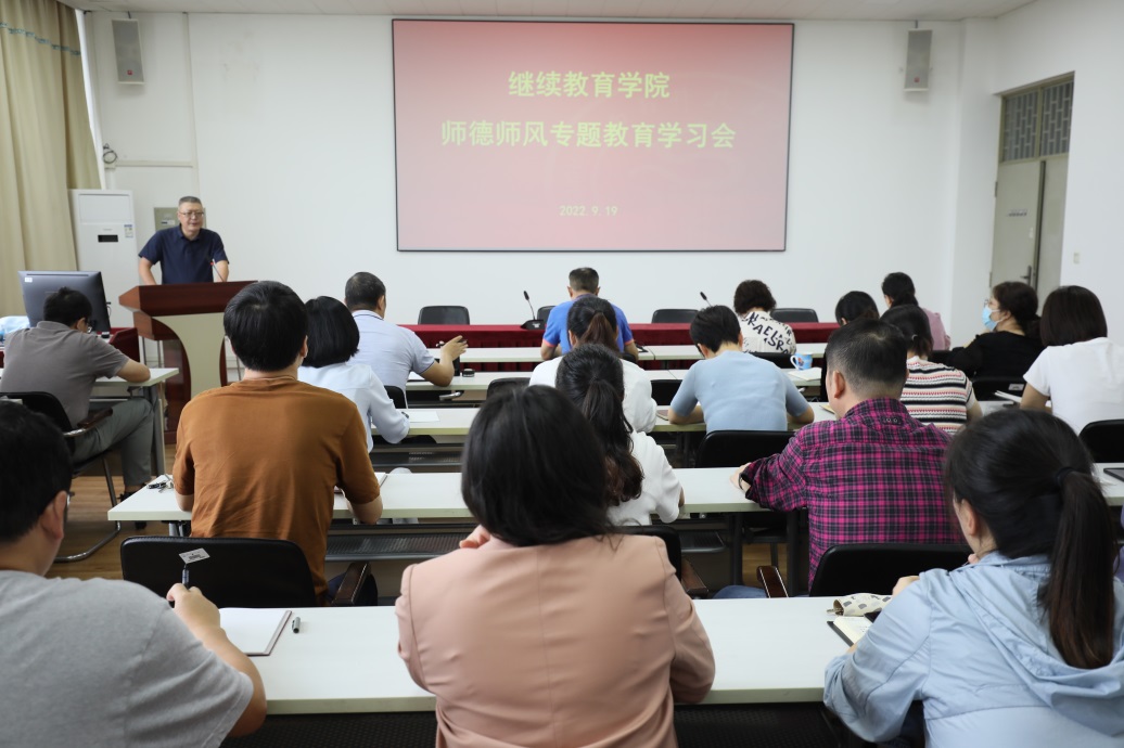 19日下午,学院全体教职工在5楼会议室召开了师德师风专题教育学习会。会议由学院院长叶旭主持。