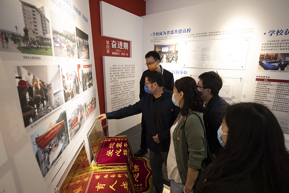 教职工在校史馆展厅依次参观了序厅、历史厅、现代厅、特色厅和尾厅5个主题展厅,了解学校在每个发展阶段的教学、科研、育人成果等。参观过程中,通过一幅幅充满历史沧桑的照片和一件件沉淀历史厚重感的实物,大家深入了解到一代代西南科大人艰苦奋斗的办学历程,深刻领悟到“艰苦奋斗、拼搏创新”的西南科大精神;通过一项项育人、科研成果和和服务社会所取得的成绩,大家为西南科大拥有如此辉煌和光荣的奋斗史而深感震撼、倍感自豪,也感受到了作为教师的初心和使命。