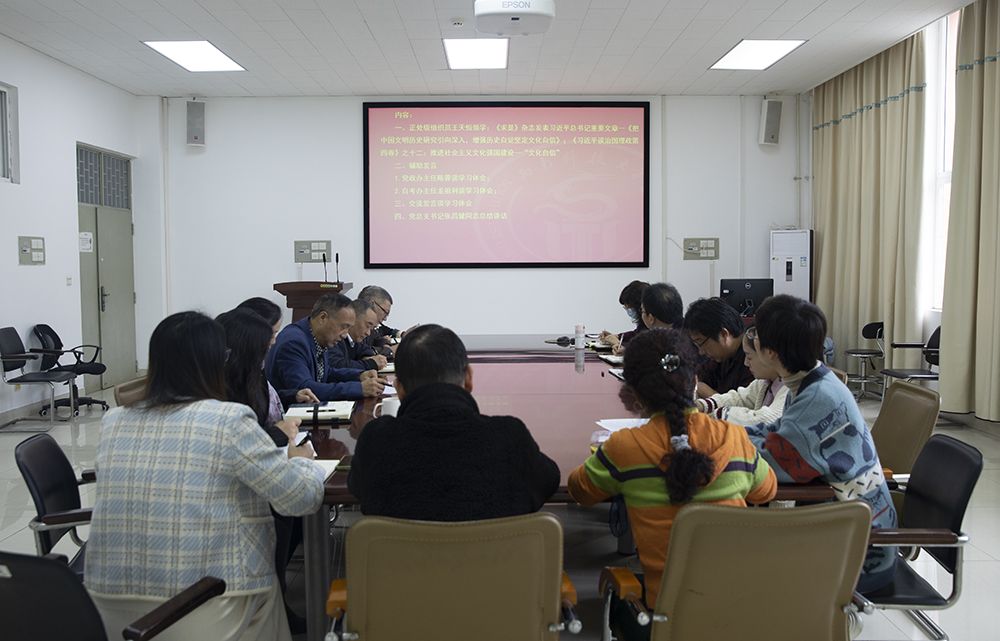 与会同志积极交流发言,陈蓉同志作了《以高质量党建引领继续教育建设》主题发言;龙祖利同志从坚持文化自信要做到守正创新,从党的发展、学校发展及继续教育发展方面谈了学习体会;万嵩同志认为应从文化自信中汲取奋进力量,做到干事创业自信。