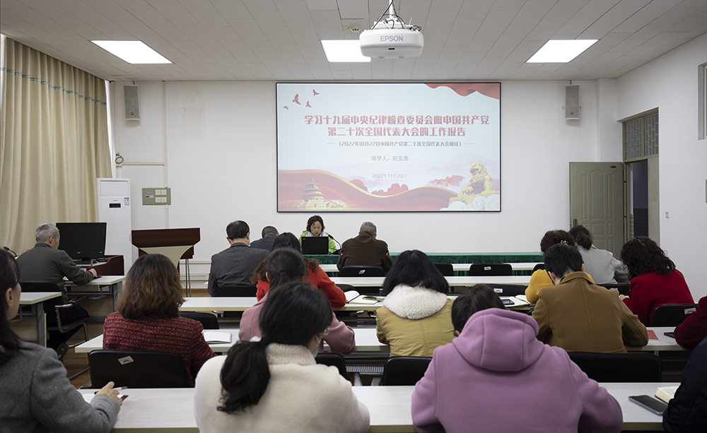 11月23日,学院召开全体教职工及党员会议,学习十九届中央纪律检查委员会向中国共产党第二十次全国代表大会工作报告精神,会议由党总支书记张昌健主持。
