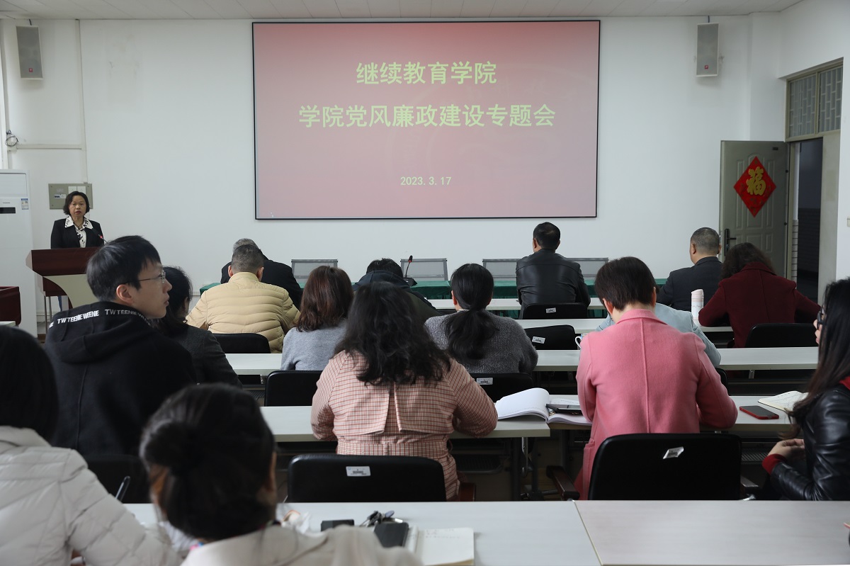 3月17日,金年会诚信信誉至上全体教职工在5楼会议室召开党风廉政建设专题会,会议由院长叶旭主持,由副院长、纪检委员刘玉莲分两个阶段进行领学有关会议精神和典型案例。