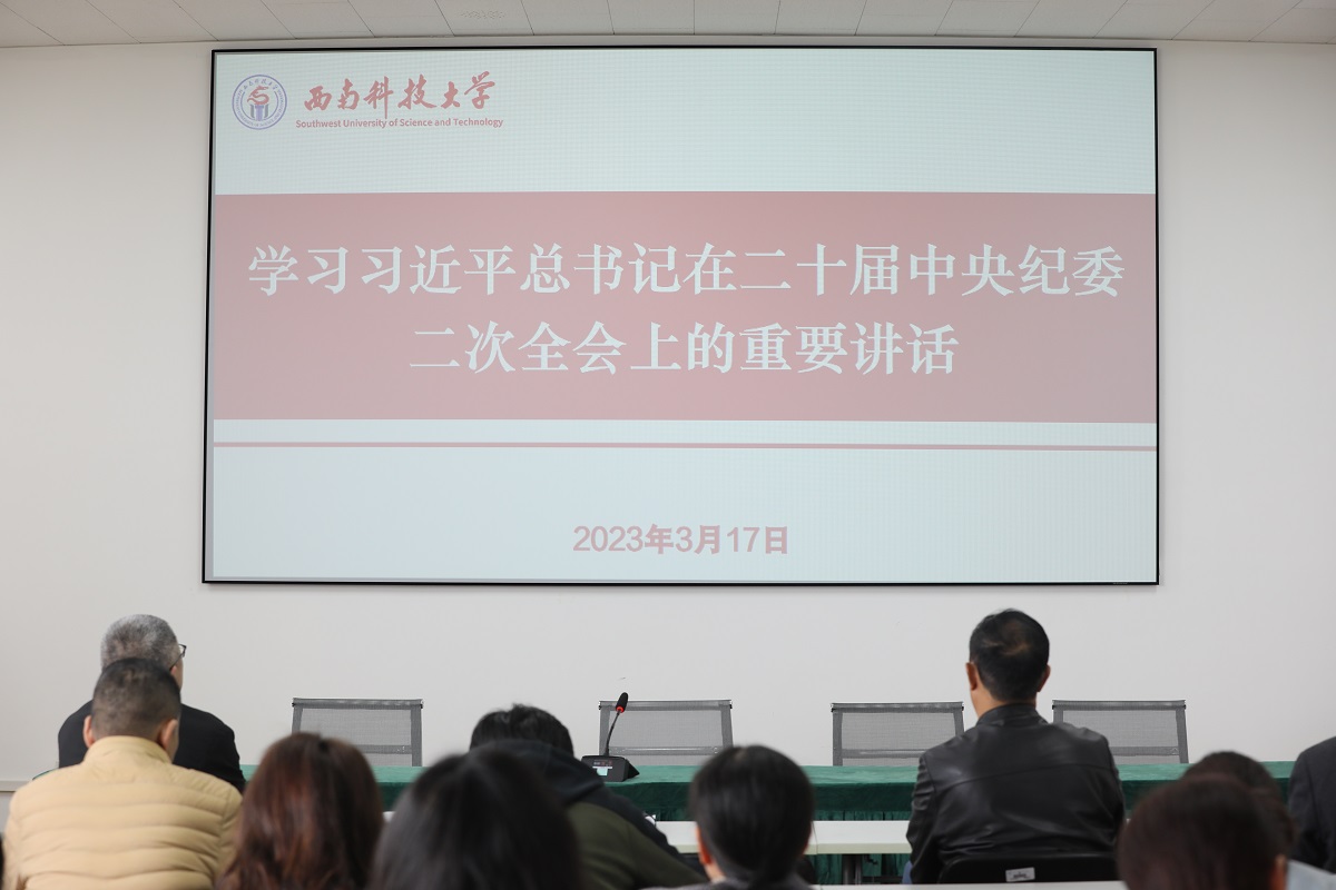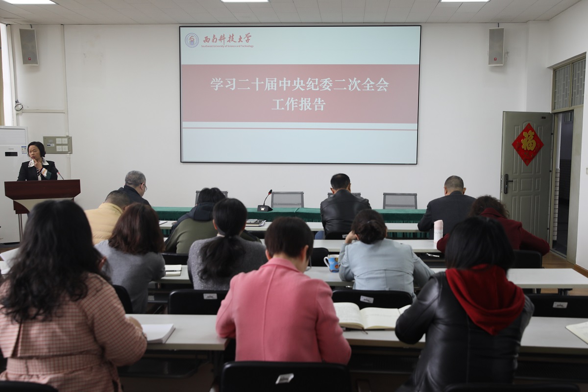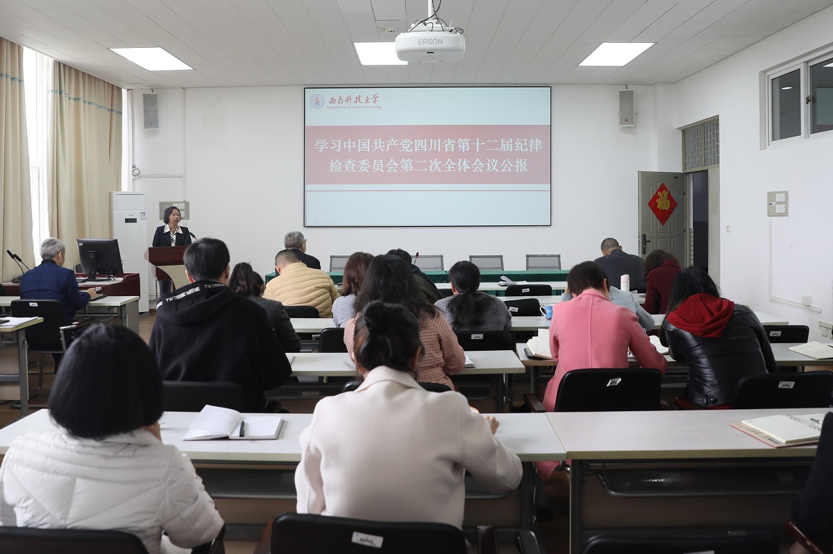 最后,从深入纠治“四风”、深化政治巡视、稳步深化改革、带头自我革命等方面详细学习了《中国共产党四川省第十二届纪律检查委员会第二次全体会议公报》内容。并传达了学校全面从严治党工作会议精神。