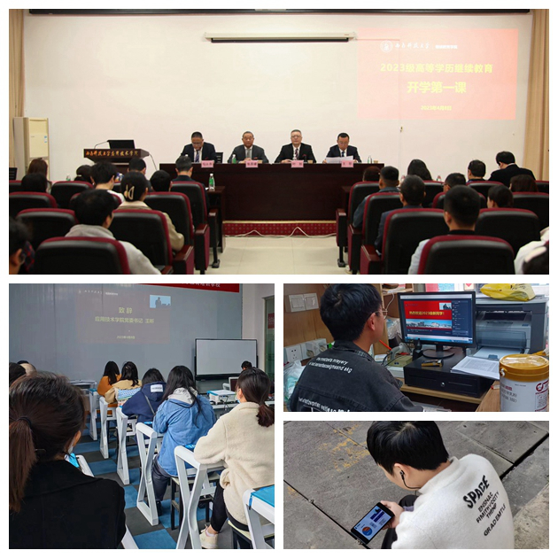 又是一年春好处,恰是相逢花盛开。4月8日,学校2023级高等学历继续教育开学第一课在应用技术学院第一会议室隆重举行,并通过新媒体平台同步直播。金年会诚信信誉至上和应用技术学院院领导、校外教学站点负责人、2023级高等学历继续教育全体学生以及校内外相关人员,近3000人参加。开课仪式由金年会诚信信誉至上副院长勾永尧主持。