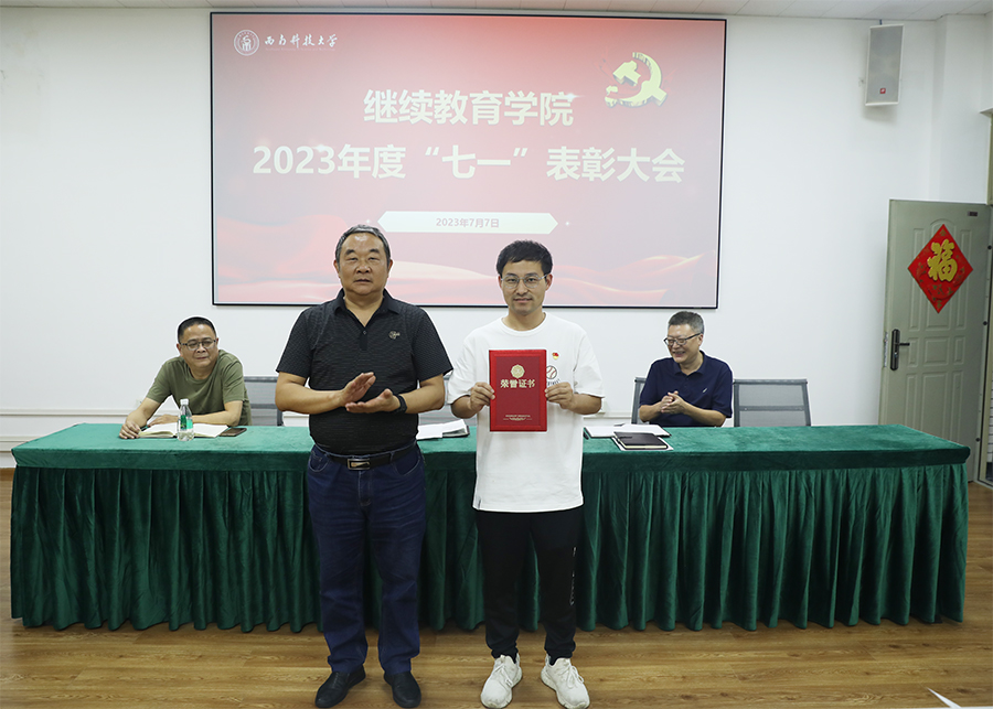 为表彰先进典型,发挥模范作用,推动学习贯彻习近平新时代中国特色社会主义思想主题教育走深走实,激励全院教职工党员不忘初心、牢记使命,以更强烈的担当、更积极的作为,推动学校继续教育事业快速发展。7月7日,学院浓重举行“七一”表彰大会。表彰大会由学院党总支书记张昌健主持。