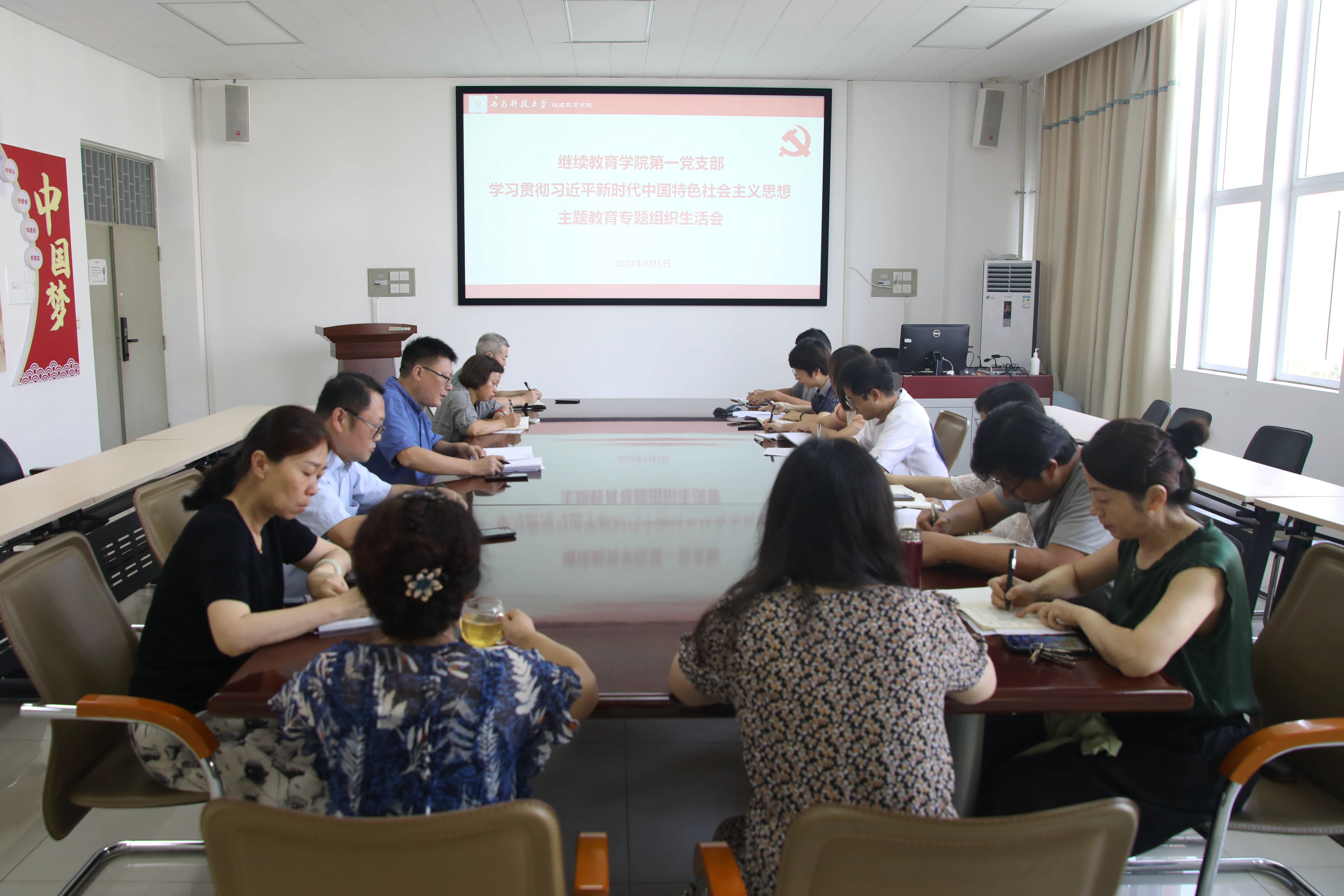 9月5日上午,学院第一党支部召开学习贯彻习近平新时代中国特色社会主义思想主题教育专题组织生活会,支部全体党员参加会议。会议由支部书记魏雪莲主持。