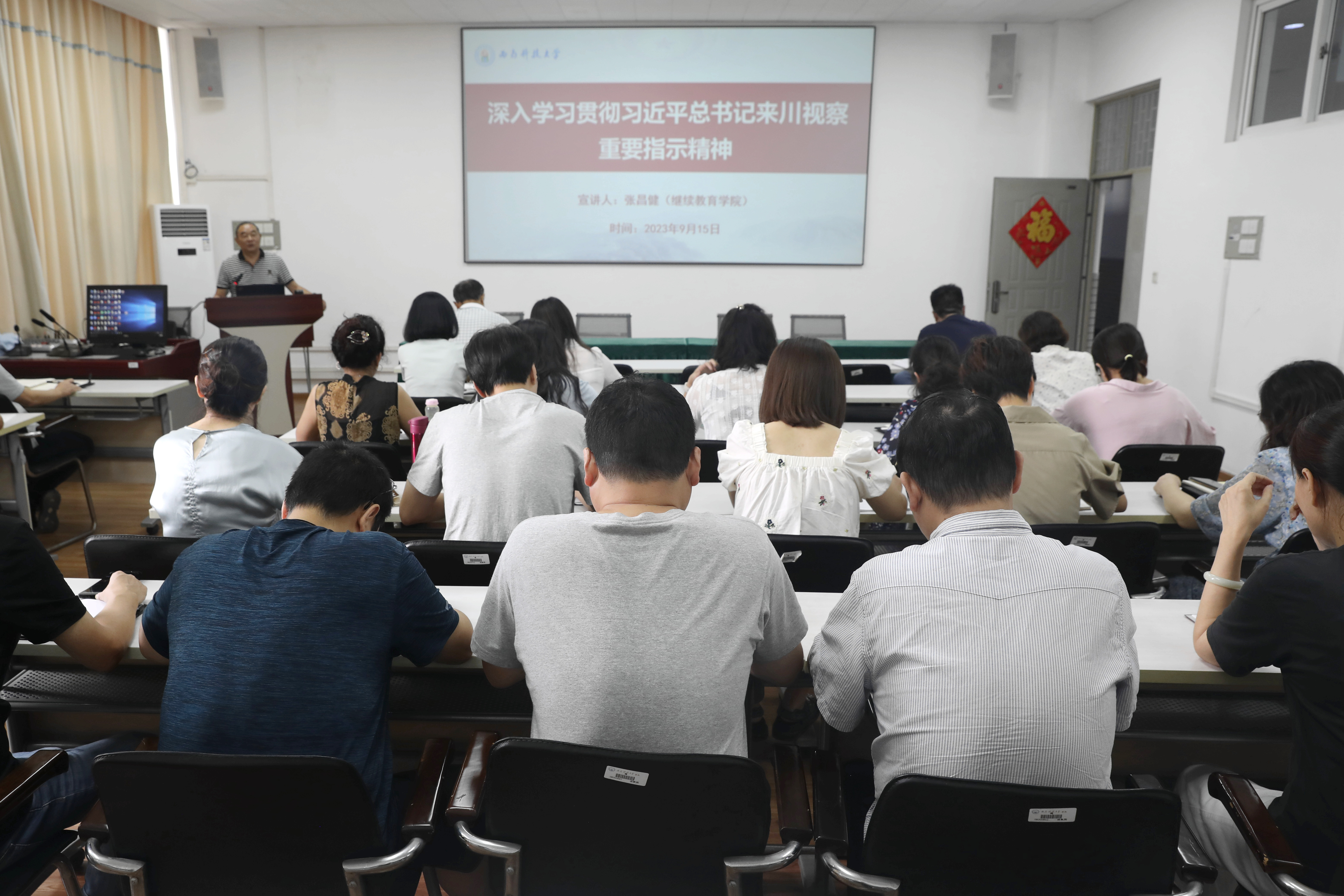 张昌健聚焦充分认识习近平总书记来川视察并出席成都大运会有关活动的重大意义;准确把握习近平总书记来川视察重要指示的丰富内涵、核心要义和实践要求;坚定推动习近平总书记来川视察重要指示精神不折不扣落地落实三个方面作了深入阐释和细致讲解,让与会教职工对习近平总书记来川视察重要指示精神有了更加深刻的认识。会上,张昌健对学院转型中存在的困难和问题进行了阐释,提出发展方向,要求全院教职工齐心协力,有组织地开展工作,积极主动领任务、抓推进、抓落实,以解决实际问题推进学校继续教育工作高质量发展。
