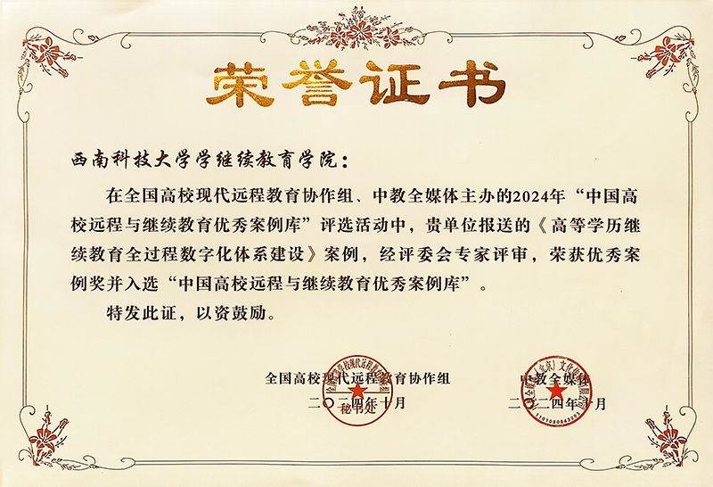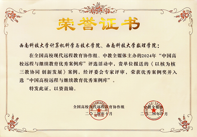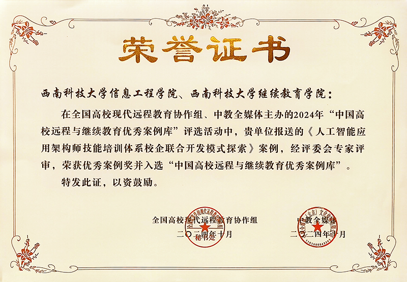 会议期间,还举行了“2024中国高校远程与继续教育优秀案例库”评选活动颁奖典礼,冉利龙等申报的“高等学历继续教育全过程数字化体系建设”、罗亮等申报的“人工智能应用架构师技能培训体系校企联合开发模式探索”、苏波等申报的“以核为核、三教协同、创新发展”案例获得“2024中国高校远程与继续教育优秀案例奖”,并入选“中国高校远程与继续教育优秀案例库”。