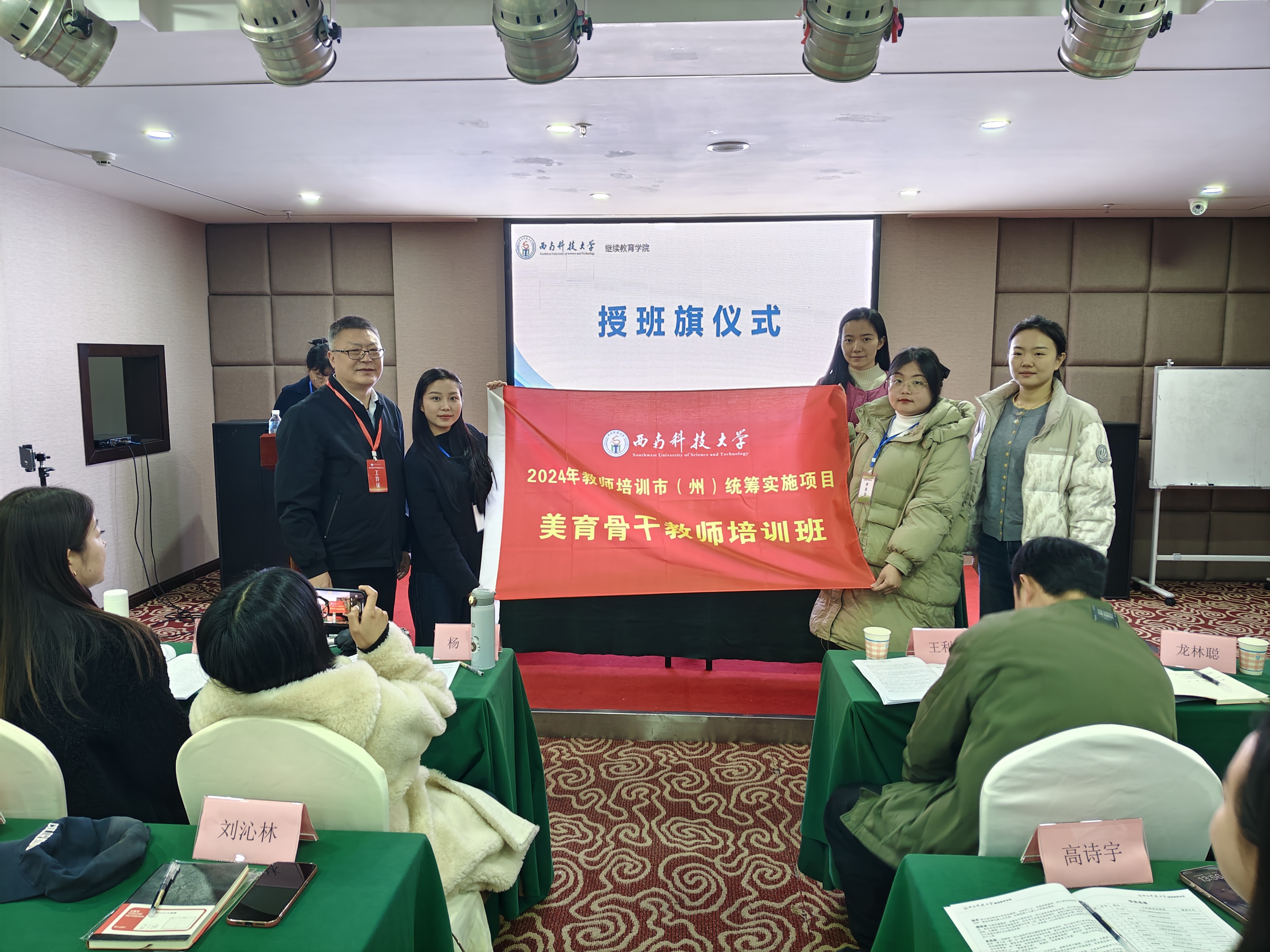 开班式上,胡月和叶旭为培训班授班旗。