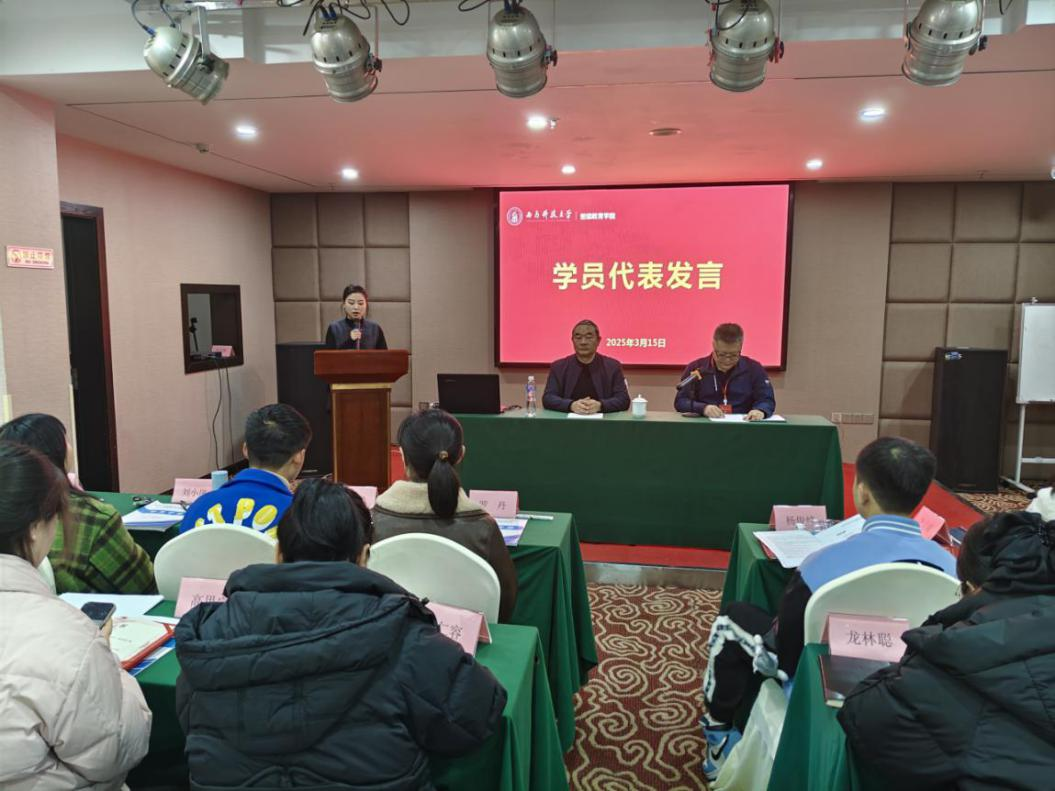 来自天全县始阳第二初级中学的白金怡作为学员代表进行了发言。参训教师纷纷表示,本次培训内容丰富、契合度高,形式多样,安排合理,管理服务到位,收获颇丰,综合素养和业务能力得到了大幅提升,并表示,在今后的工作中,将以“教育家精神”为舵,坚守育人初心,将红色文化、传统文化融入课堂,让美育成为培根铸魂的“生命课”;以“跨学科整合”为帆,打破学科壁垒,开发校本课程,让美育从“单科独奏”走向“全域交响”;以“心理自护与专业精进”为桨,持续学习成长,构建“家校社”协同育人网络,让美育的星光点亮每一颗心灵。